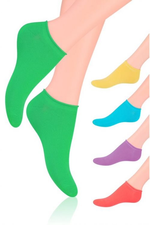 Bawełniane 87% stopki damskie z dodatkiem elastanu, jednolite. Delikatnie wywinięty, nieuciskający ściągacz.