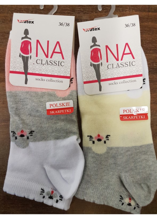 Stopki damskie z wysokiej jakości bawełny 76% z dodatkiem włókien elastycznych. Bogate wzornictwo i kolorystyka. Wybierane losowo.