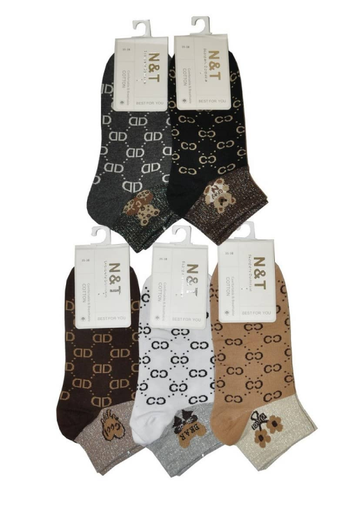 Stopki damskie z bawełny i dodatku włókien elastycznych ozdobione wytłoczonymi ażurowymi wzorami Skład: 85% bawełna, 10% poliester, 5% elastan.( Opakowanie jeden rozm. 5mix wzór .)