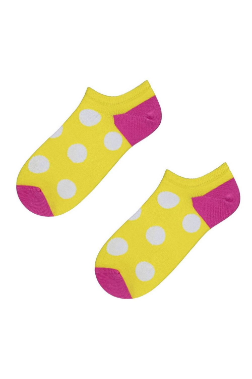 Stopki damskie wzorzyste z cienkiej bawełny i włókien elastycznych. Specjalna konstrukcja ściągacza oraz wzmocnienie miejsc silikonem stabilizuje stopkę. Skład: 70% bawełna, 29% poliamid, 1% elastan.