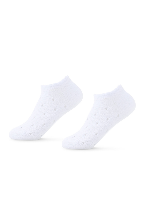 Stopki ażurowe białe ,bezuciskowy ściągacz wykończony pikotką.Pakowane po 6 par. Skład: 72% bawełna, 24% poliweter,4% elastan.