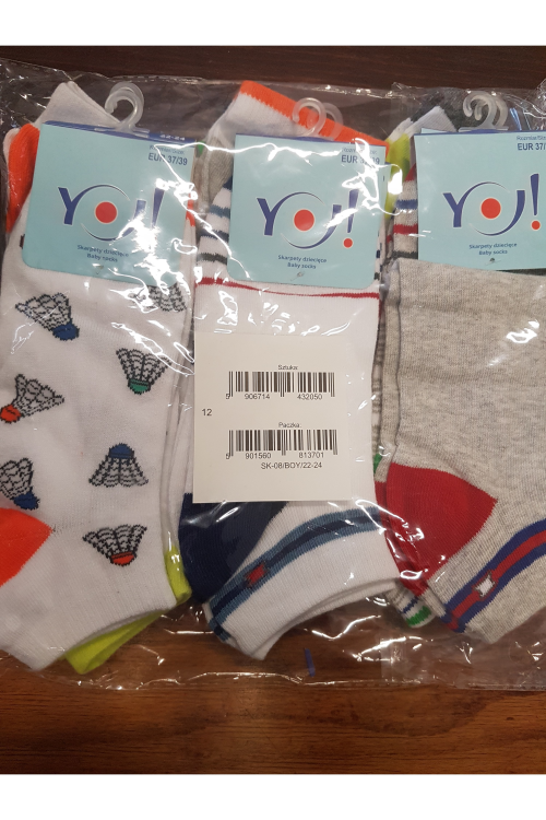 Stopki dziecięce, ozdobione kolorowymi wzorami. Wykonane z bawełny 80%, poliamidu 15% i elastanu 5%. Bogate wzornictwo i kolorystyka. Pakowane po 12 par.