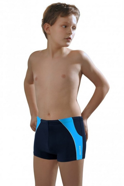 Dziecięce bokserki kąpielowe wykonane z mikrofibry ozdobione kontrastującymi wstawkami. Tył jednolity. W pasie elastyczna gumka, od wewnętrznej strony sznureczek do regulacji obwodu. Dostępne kolory: czarny, grafitowy, granatowy, niebieski.